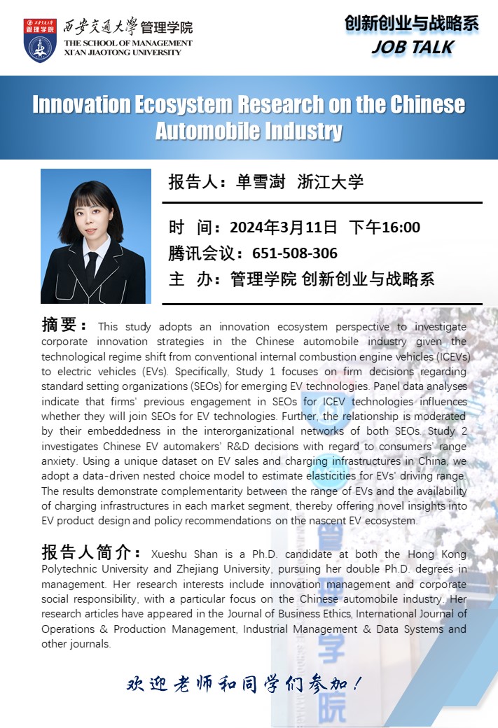 讲座: Innovation Ecosystem Research on the Chinese Automobile Industry