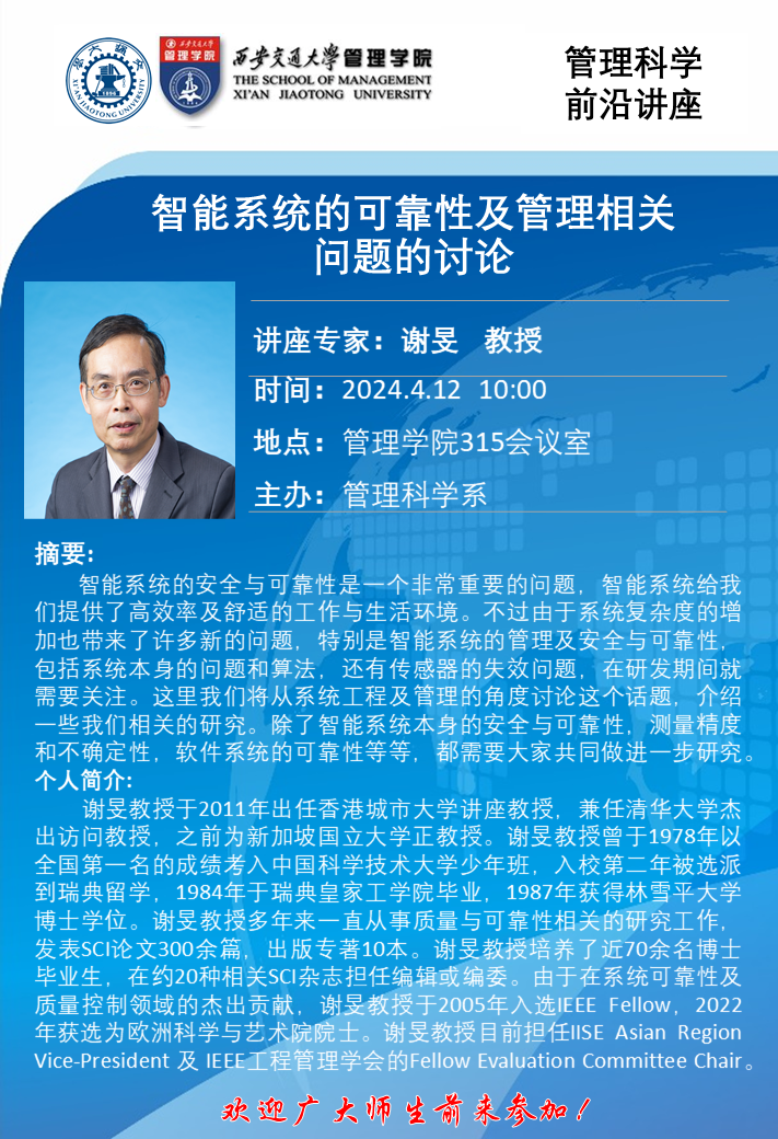 讲座:智能系统的可靠性及管理相关问题的讨论