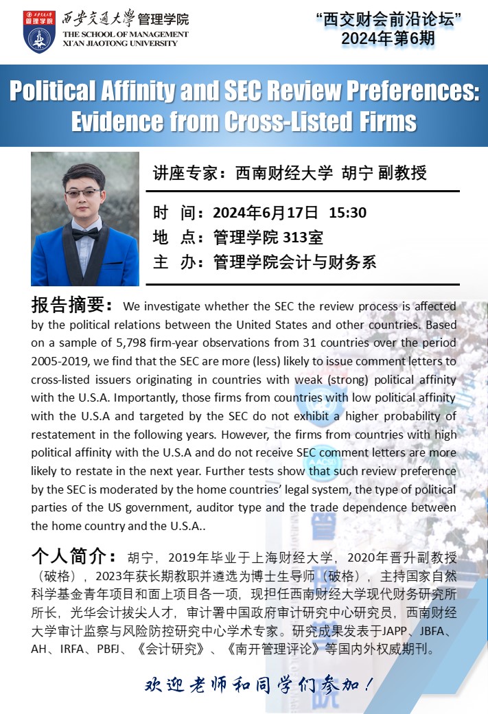 讲座:Political Affinity and SEC Review Preferences: Evidence from Cross-Listed Firms