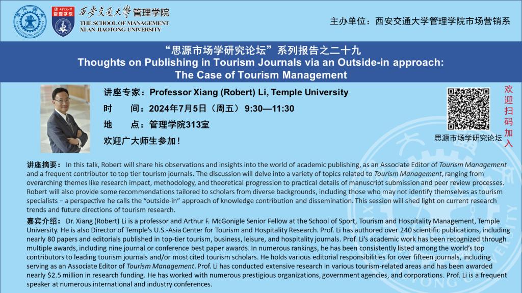 讲座:Thoughts on Publishing in Tourism Journals via an Outside-in approach: The Case of Tourism Management 2024-06-27
