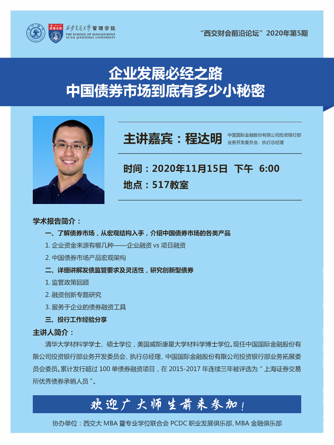 西交财会前沿论坛2020年第5期:企业发展必经之路,中国债券市场到底有多少小秘密?