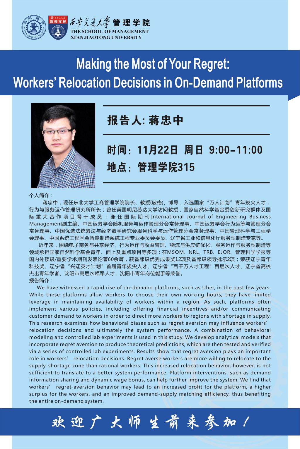 报告题目:Making the Most of Your Regret: Workers’ Relocation Decisions in On-Demand Platforms