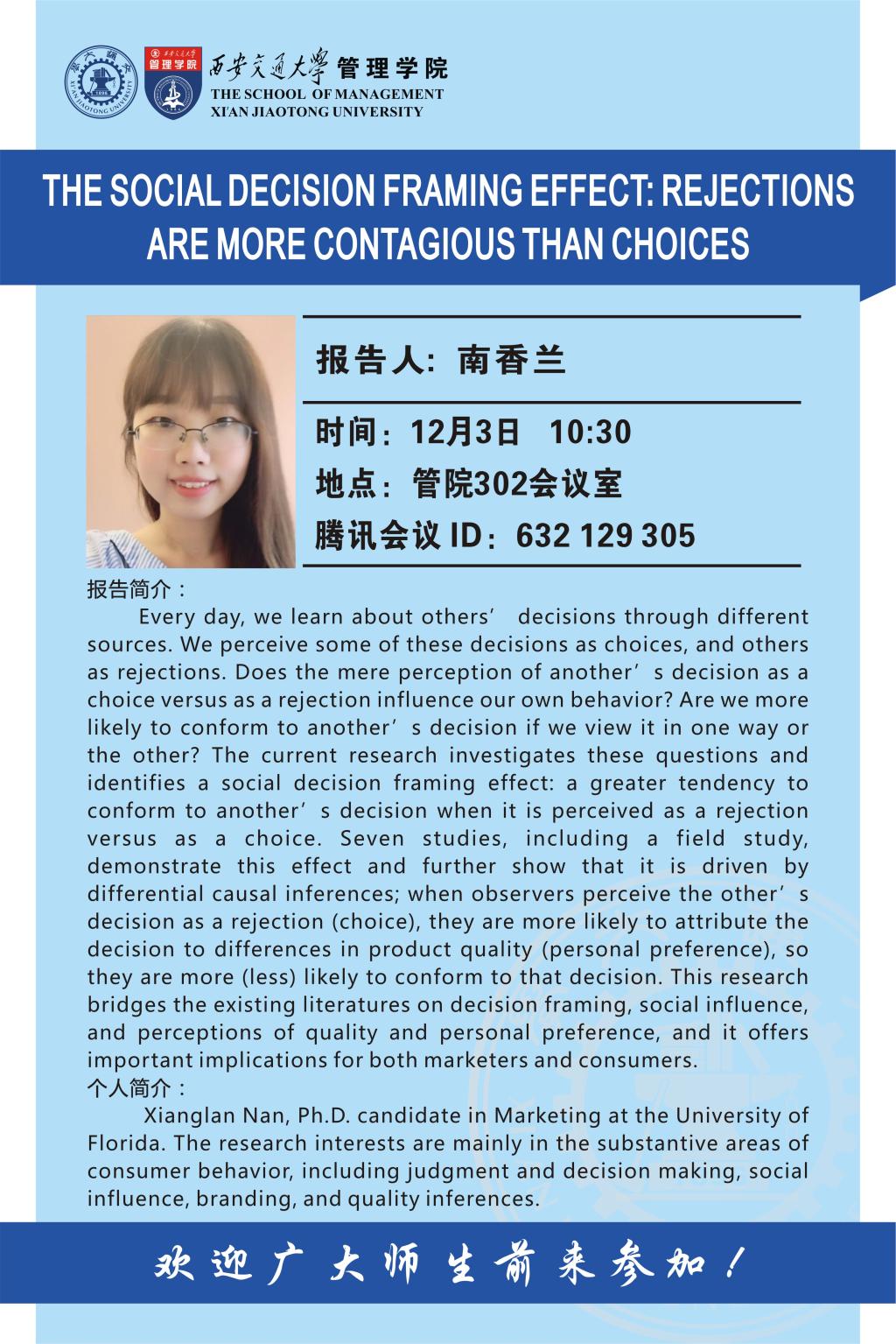 报告题目:THE SOCIAL DECISION FRAMING EFFECT: REJECTIONS ARE MORE CONTAGIOUS THAN CHOICES