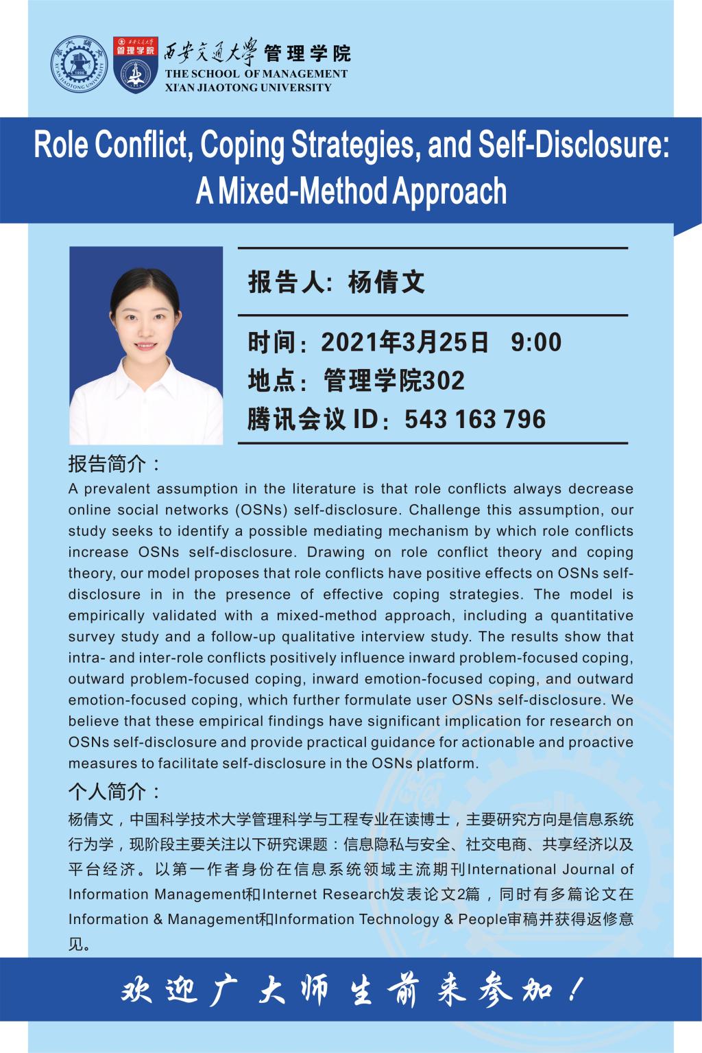 题目:Role Conflict, Coping Strategies, and Self-Disclosure: A Mixed-Method Approach