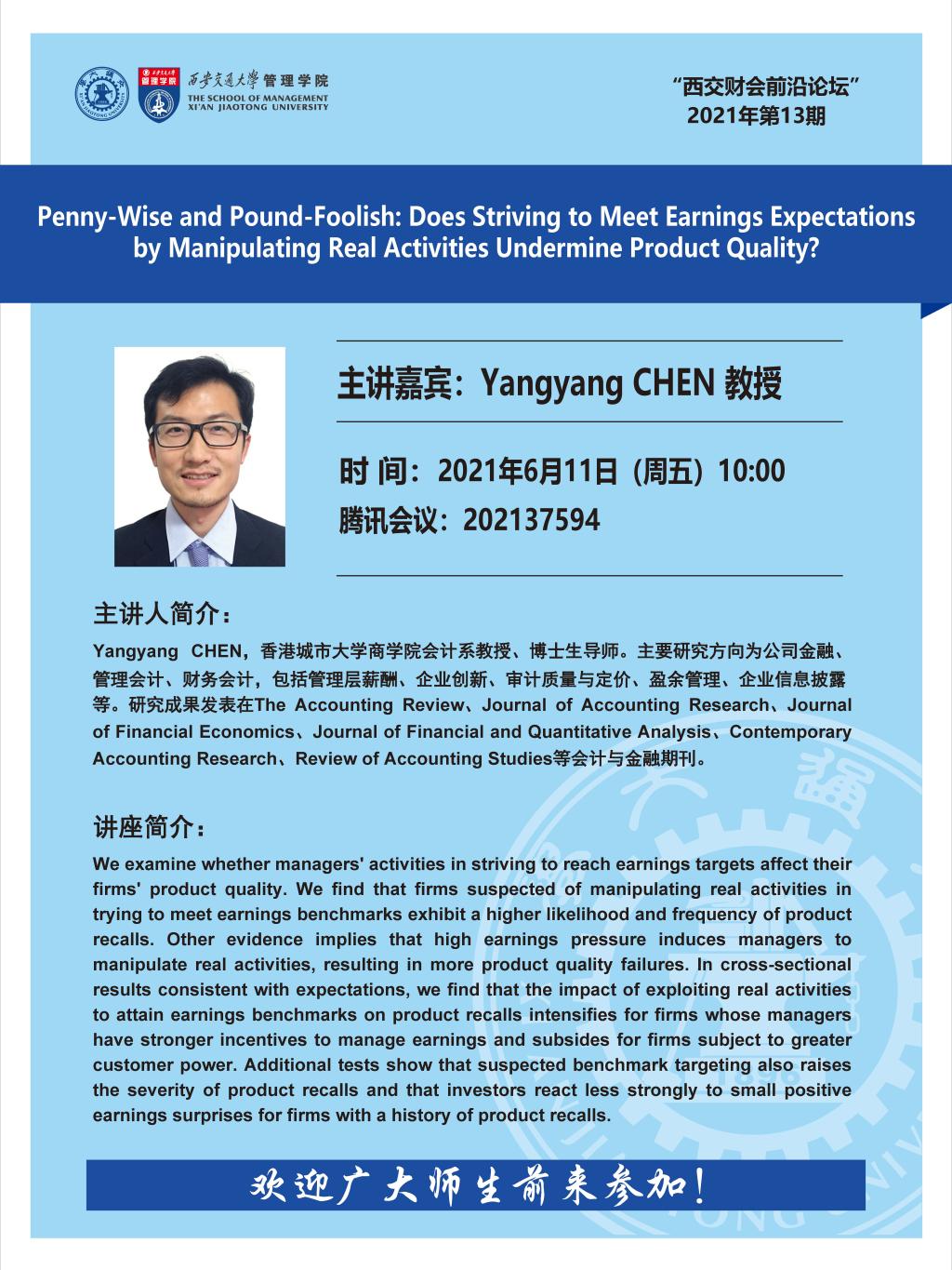 题目:Penny-Wise and Pound-Foolish: Does Striving to Meet Earnings Expectations by Manipulating Real Activities Undermine Product Quality? 2021-06-03