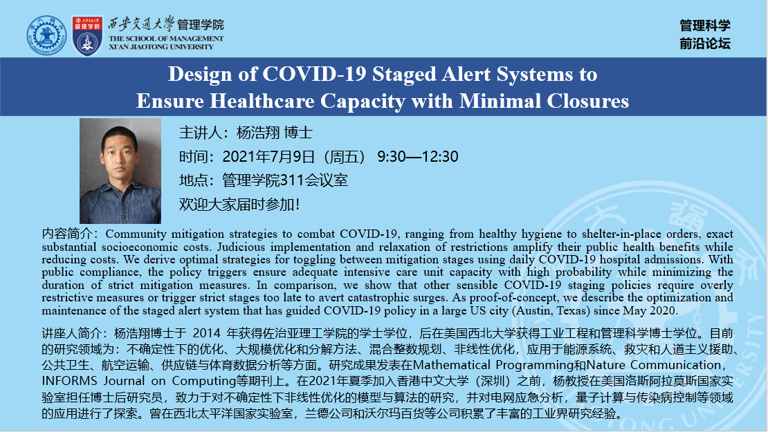 题目:Design of COVID-19 Staged Alert Systems to Ensure Healthcare Capacity with Minimal Closures 2021-07-06