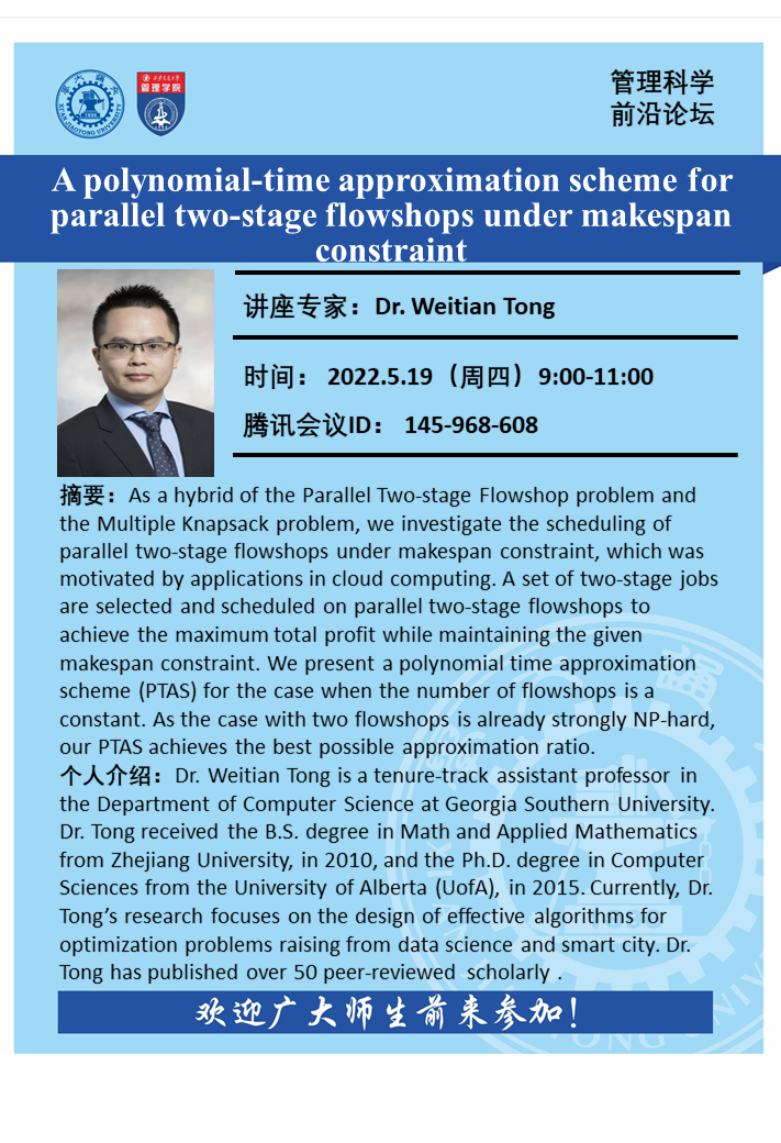 题目:A polynomial-time approximation scheme for parallel two-stage flowshops under makespan constraint 2022-05-12