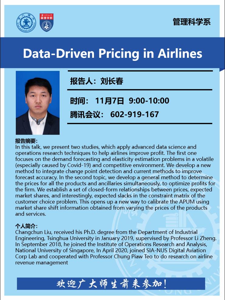 题目:Data-Driven Pricing in Airlines