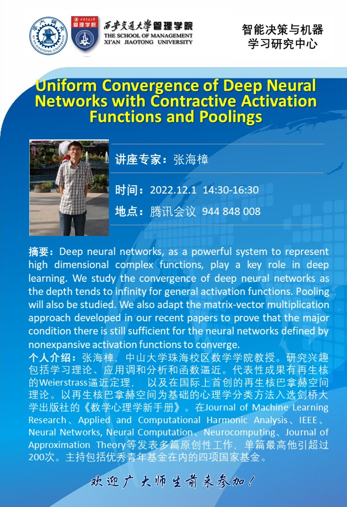 题目:Uniform Convergence of Deep Neural Networks with Contractive Activation Functions and Poolings 2022-11-29
