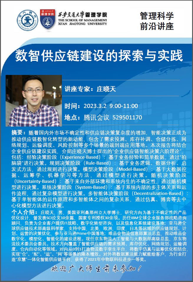 管理科学前沿讲座:数智供应链建设的探索与实践