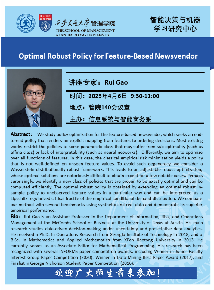 题目:Optimal Robust Policy for Feature-Based Newsvendor