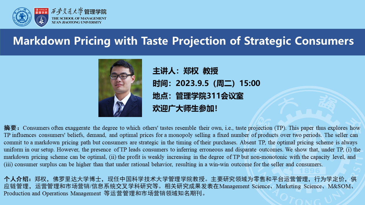 题目:Markdown Pricing with Taste Projection of Strategic Consumers