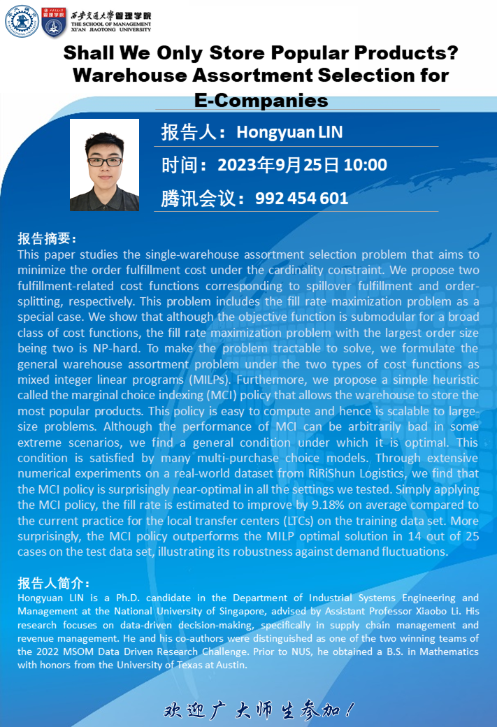 题目:Shall We Only Store Popular Products? Warehouse Assortment Selection for E-Companies