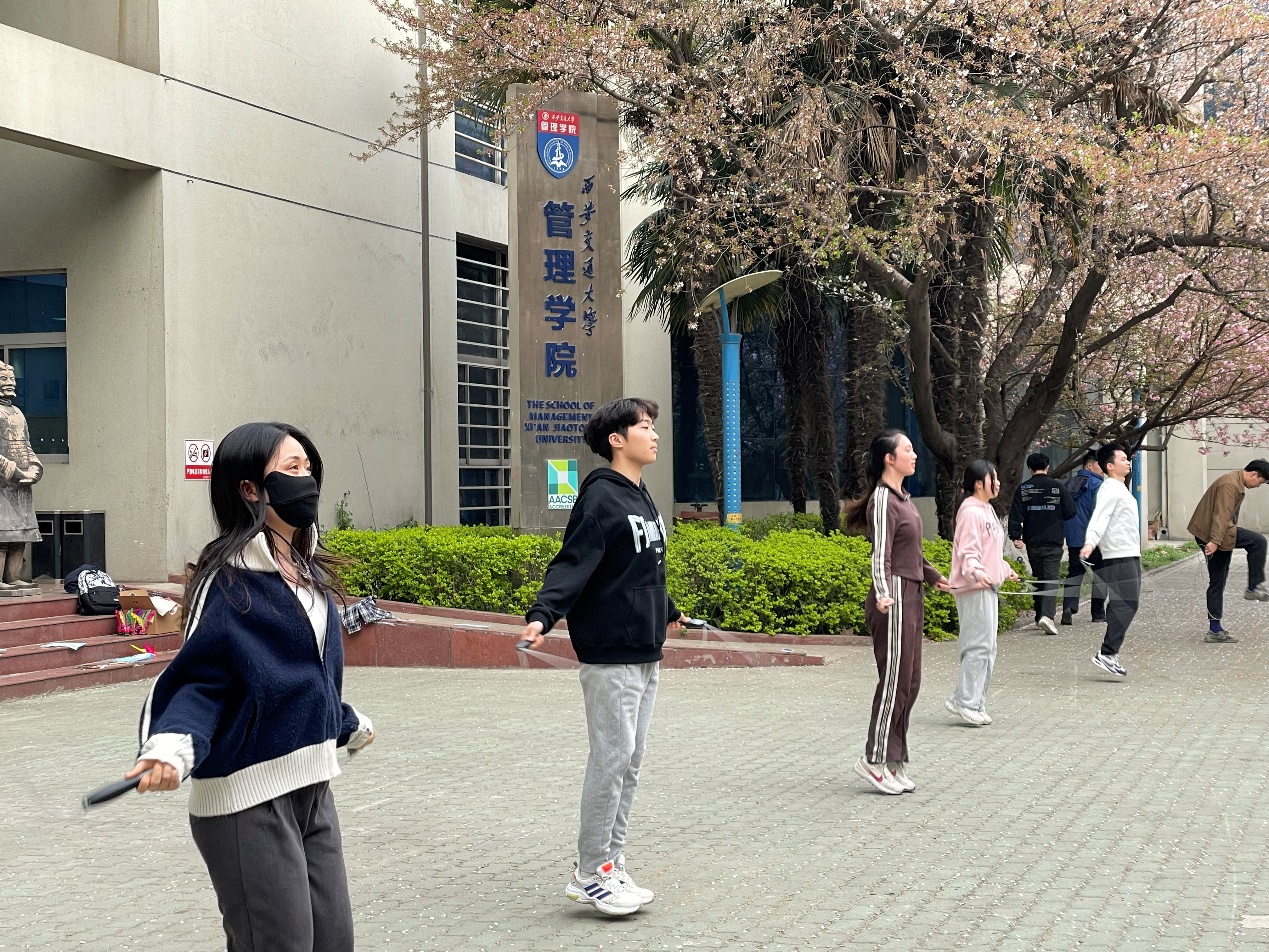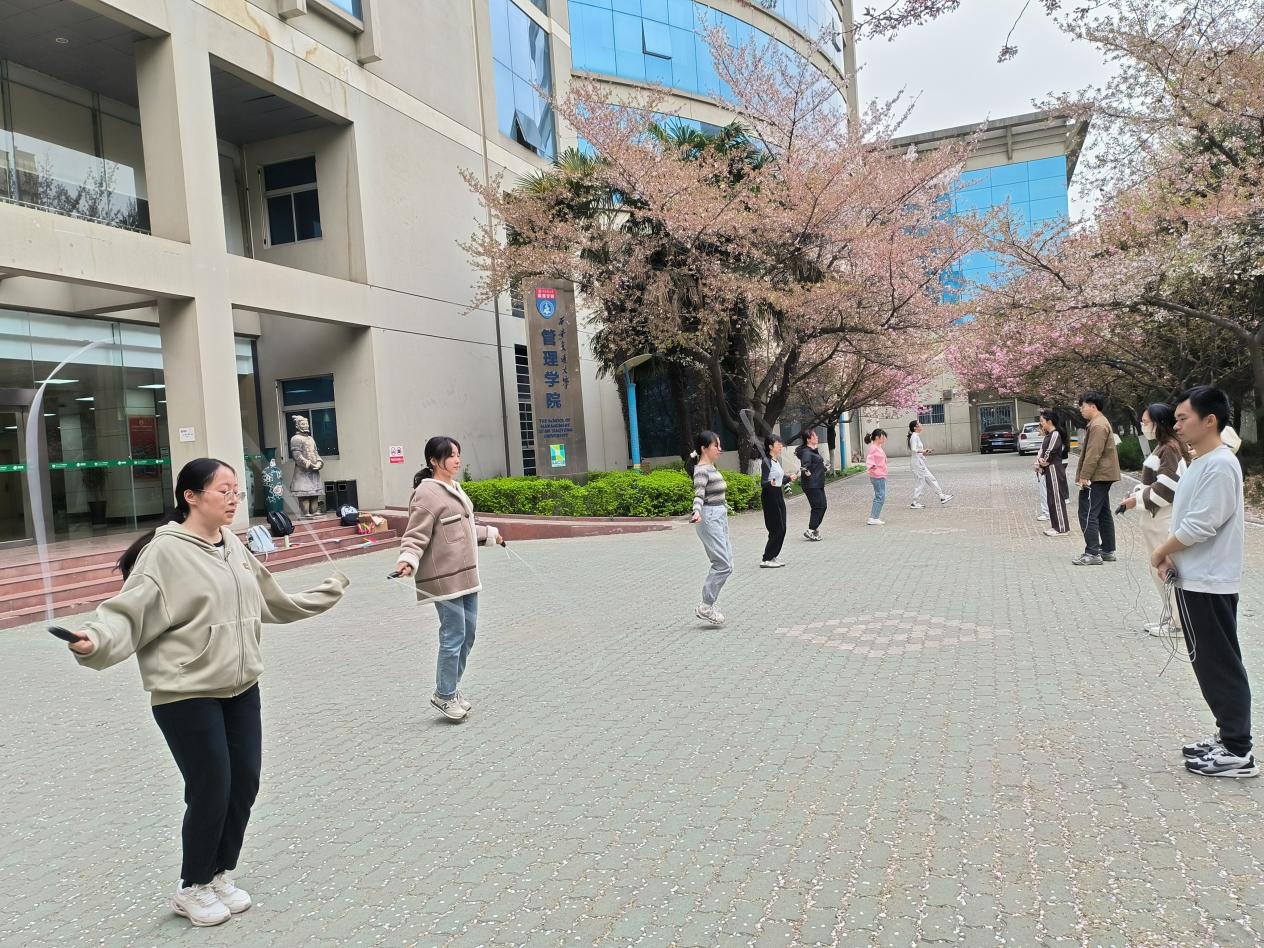 于3月27日下午在兴庆校区组织了一场别开生面的研究生跳绳与踢毽子友谊赛,二十余名研究生踊跃报名参与,学院党委副书记叶宁、辅导员李明睿、胡瑛出席本次活动。