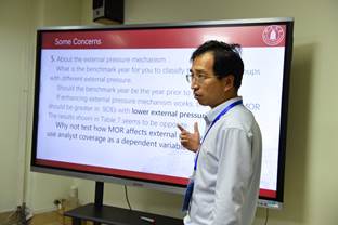 的贾明教授和香港城市大学商学院的余扬新教授为在场博士生带来了题为“Guidelines for quantitative CSR research”和“国际前沿会计研究:新领域、中国研究与国际发表”的主题报告。在场博士生同两位教授就企业社会责任研究、中国研究问题发表和读博期间的困惑展开交流,现场讨论气氛热烈,博士生受益匪浅。