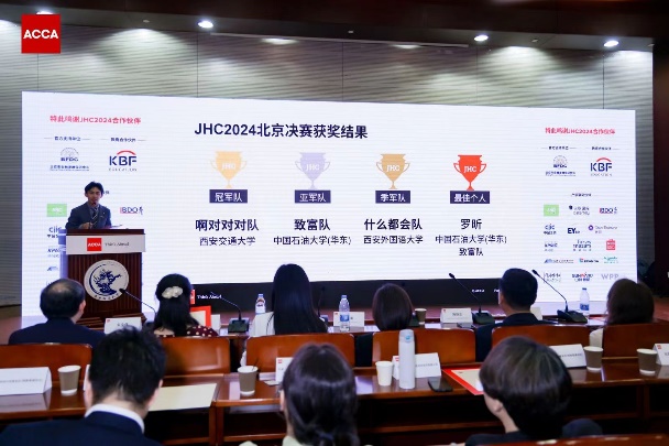ACCA全国就业力X未来商业创想大赛(原ACCA全国就业力大比拼,简称JHC)是以全面提升大学生就业力和商业素养为目标的全国性赛事。大赛通过模拟企业标准招聘流程,从网申、笔试、商业案例分析、小组群面等多个环节锻炼和培养学生的综合素质和职场竞争力。JHC不仅考验选手的逻辑思维能力、现场应变能力和英语表达能力,更对选手的团队合作精神和商业环境敏锐度提出很高的要求。JHC2024大赛自5月启动,吸引全国数千名大学生参赛。决赛中每组有22分钟展示时间,包括16分钟英文案例演讲及6分钟评委英文问答。各组队员准备充分,展示精彩,竞争十分激烈。西安交大代表队沉着冷静、合理分工,熟练运用专业知识顺利完成案例分析和问答环节,以精湛的专业知识、清晰的逻辑思路、流利的口语表达展现了管院学子超强的专业素质与扎实的外语能力,凭借出色的表现获得评委们的一致认同。