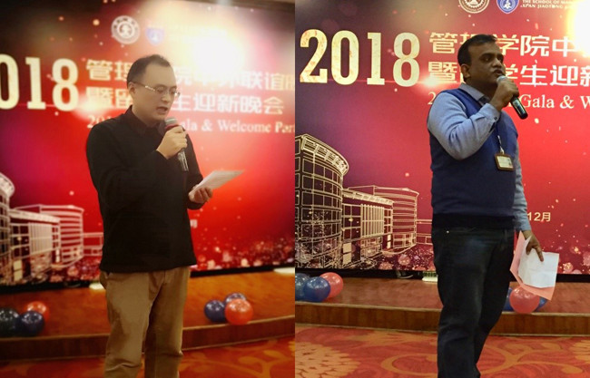 外籍教师Mohan作为教师代表发言,对学生的学习生活提出建议和指导;博士留学生Radwan作为学生代表发言,对学院的培养和教育以及举办此次晚会表示感谢。