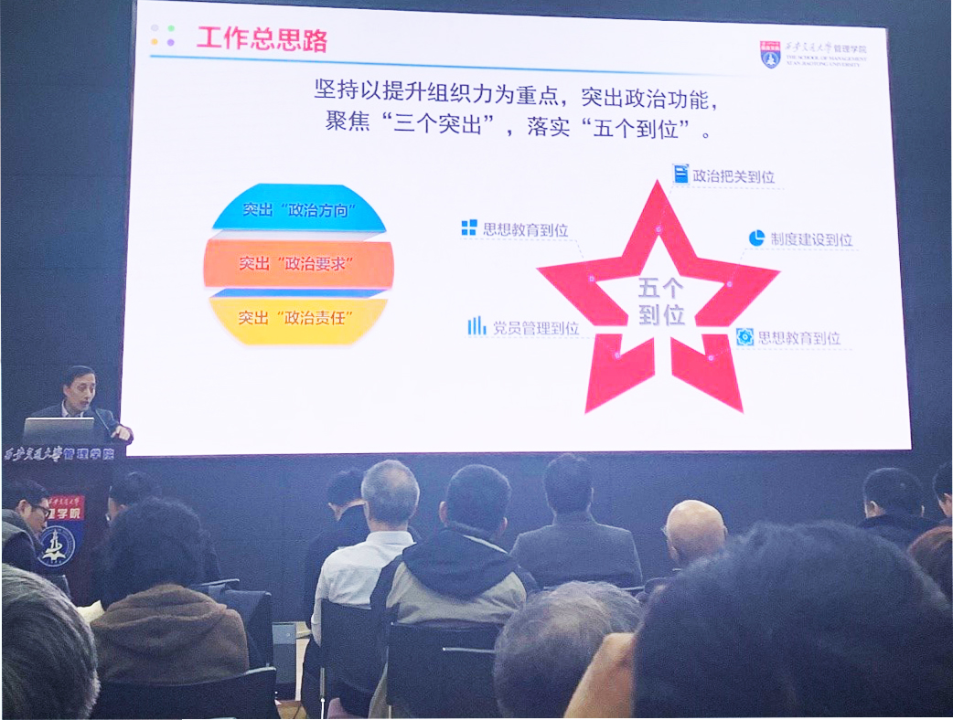 冯耕中院长在大会上做学院工作报告,他表示“稳人心、图发展、以变革应对变化”是学院长期以来的工作方针,强调2019年学院在学科发展、科学研究、队伍建设、人才培养、管院教育国际化战略3.0等方面取得的成绩是全体师生的共同努力的结果,并就学院未来的发展规划和2020年重点工作部署进行了介绍,提出“发展是硬道理”,鼓励全院教师再接再厉,共同为“双一流”学科建设和学院发展贡献智慧。
