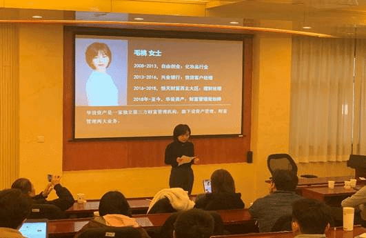 毛桃女士,现任华设资产财富管理规划师,她结合自己创业过程中的一段段真实经历讲解了就业和职业发展中的注意事项,强调同学们一定要把握时代机会,勇于接触新鲜的事物,走出自己的舒适圈并紧跟时代潮流。她指出,选择工作时不仅要考虑到薪资待遇等因素,更要关注这份工作是否能让你持续学习与成长。