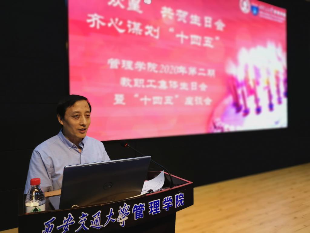 会上,冯耕中院长总结了学院2020年1月至5月在学科发展、科学研究、队伍建设、人才培养、管院教育国际化战略3.0、思想文化建设等方面取得的成绩;结合当前国际国内环境态势和新冠疫情造成的影响,对学院学科发展进行了分析;并就学校“十四五”规划、“跑五”工作和创新港平台建设的要求,以及学院未来的发展规划和重点工作部署进行了介绍;号召全体教职工结合学院实际情况,一起为“十四五”规划群策群力,共同绘就学院未来发展蓝图。