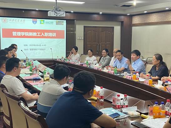 根据青年教师的日常工作与职业发展需要,学院特邀信息管理与电子商务系主任廖貅武教授为新教师讲解如何处理好教学和科研、个人和团队、长期和短期、本职工作和公共服务、新教师和老教师、横向和纵向课题、以及学生和老师的七大关系;多年评教优秀教师张喆教授结合自己工作经验,分享本科、学术硕士博士、专业学位学生的指导和培养,以及作为年轻教师如何平衡好科研与教学的关系;原学院学工办主任伍欣结合多年学生工作中的案例和体会,讲述融洽的师生关系对于校友工作和学院未来发展至关重要,言传身教大于一切。教务中心主任刘海城、人力资源与教师服务中心主任耿葳、科研外事项目主任吕文静分别从各自的业务出发,向大家讲解了具体业务工作中容易出现遗漏、忽视和错误的共性问题,以及重点、重要和难点问题,为新教职工未来工作的顺利开展和个人职业生涯规划做好铺垫。