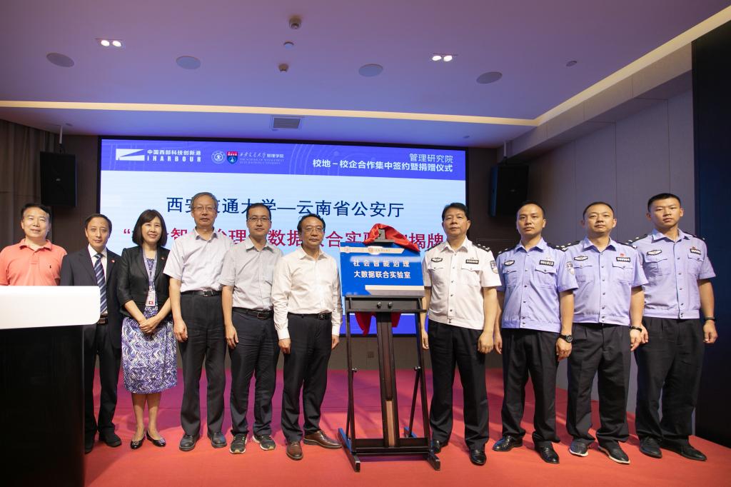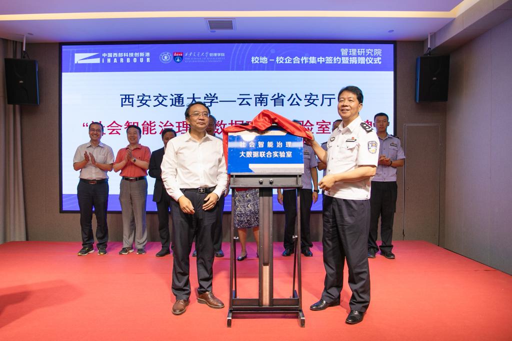 副校长席光和云南公安厅副厅长胡水旺一起共同为“社会智能治理大数据联合实验室”揭牌,a漫