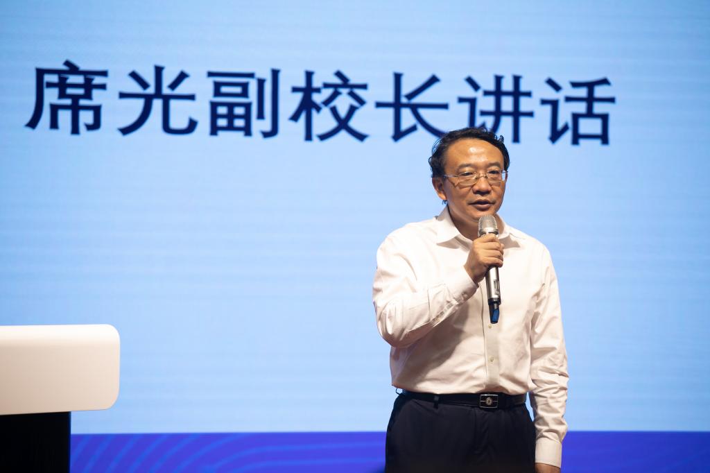 党委常委、副校长席光在讲话中强调中国西部科技创新港是学校在新时代服务国家战略需求,勇于担当,促进大学与社会各界力量融合发展的重大项目。相信在学校党委的正确领导下,在与地方政府以及行业龙头企业的互动合作过程中,一定会持续深入,合作共赢,在人才培养、科学研究和社会服务等方面,取得丰硕的果实。