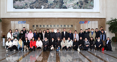 参观完毕后,11点30分左右,大家来到集团会议室参加座谈会展开座谈。首先由彩虹集团副总工程师、规划科技部部长韩彬为大家介绍彩虹集团的“十四五”规划。她介绍到,历史上,彩虹集团是行业领军者,曾经创造过多个行业第一。在企业未来的发展方向上,彩虹集团制定了“223”战略结构,第一个“2”是指彩虹集团与彩虹股份在十四五末时营收双过百,第二个“2”是指持续经营好“液晶面板”和“光伏”两大规模性产业,“3”是指聚焦发展电子玻璃、光伏玻璃和新材料三个战略性核心业务。在企业前进的过程中,必然会遭受内外部的矛盾与阻力,面对这些挑战,韩彬部长对彩虹集团的战略做出了两大思考,一是寻找企业的护城河,即构建企业的核心竞争力;二是不断疏浚、拓宽护城河,即技术创新、商业模式创新和成本领先。而企业的战略定力和坚持不懈的努力则是企业实现战略目标的基石。