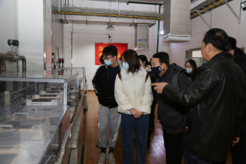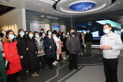 行车30分钟后,大家到达此次调研的首站—彩虹新材料有限公司。由企业彩虹新材料副总经理张帅奇和彩虹新材料总经理助理高峰分别为大家讲解锂电池项目和光刻胶项目。先进的实验设备让大家感受到了科技的力量,并向科研人员表达了敬意。