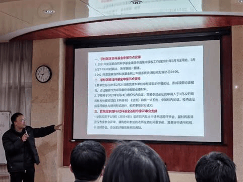 刘汕副院长主持。明年基金申报在校外校内依然竞争激烈,需要学院教师积极申报,广泛参与,切实将学院的科研发展向前推进,同时与会教师应尽早动手,努力提高申报量和获审率。本次动员大会拉开了学院2021年度国家基金申报的帷幕,学院将通过摸底、选题答辩、专家评审等一系列举措帮助申报教师们提高选题和申报质量,以提高学院在2021年度的整体资助率。