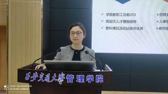 叶宁副书记对2020年学院人事、学生及宣传工作做了汇报,重点介绍了通过完善优化各类人才方案细则和规程,在引进人才加强高质量队伍建设、学生党建和毕业生就创业以及学院文化建设和宣传工作取得的成绩。