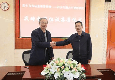 与西安市市场监管局将按照“创新、联动、务实、共赢”的原则,结合双方优势和发展需求,深入开展高层次管理人才和专业人才培养,加强科学研究和智库合作,共建西安市质量和品牌标准化技术委员会,共同促进陕西省及西安市公共服务效能提升,助力一流大学建设。