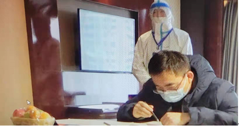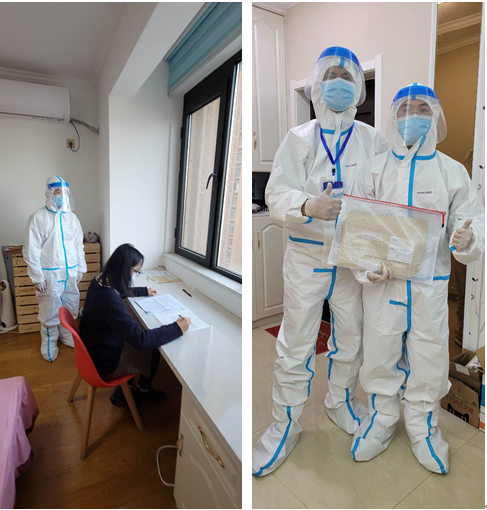 孙卫老师和汪方军老师负责隔离酒店考生的送考监考工作,裴云龙老师和张旭老师、童小梁老师和李明睿老师负责居家隔离考生的送考监考工作,他们严格按照疫情防控要求,身着防护服冒着被感染的风险进入隔离试场履行监考职责。