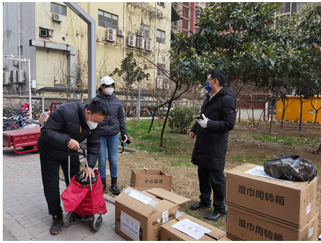 家属区志愿服务团队的孙少龙、罗江海、唐晓霞、杨瑞娜、李莎、江旭、赵玺等志愿者老师,分别给居住在家属区一村、二村和三村的学院离退休老同志挨家挨户送去口罩、手套、洗手液、酒精等防疫物资,了解他们的生活情况和身体状况,并重点对70岁以上的老同志开展“一对一帮扶”,为他们排忧解难,让老同志们在这一特殊时期感受到组织的爱护关切之心。