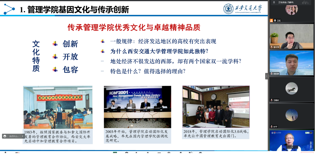 分论坛在线上成功举办。本次会议由学院叶宁副书记主持,参会领导及同事有学院院长冯耕中教授、党委书记马晓彬老师、管理科学系和信息系统与智能商务系主任、支部书记及教师代表。邀请到两位来自海外的优秀学者参会。