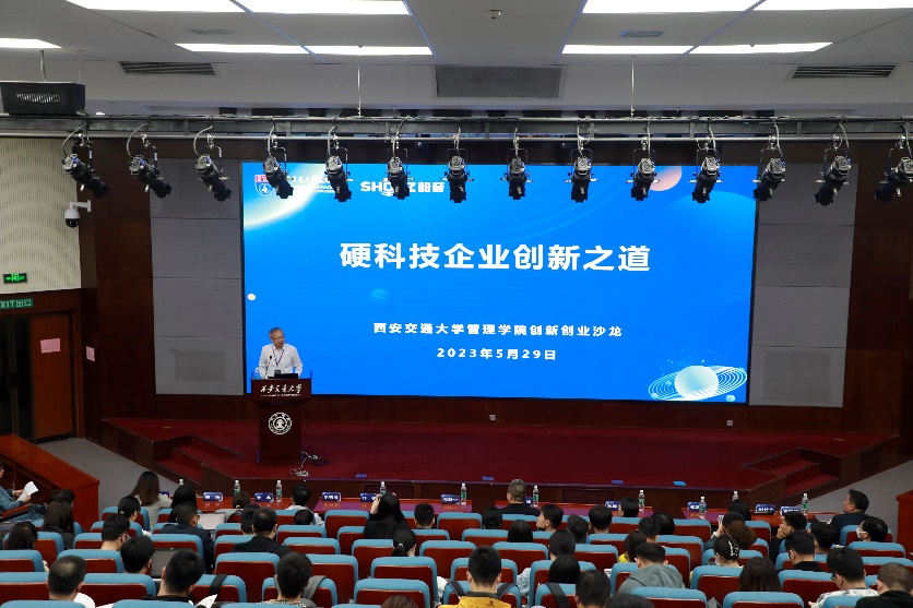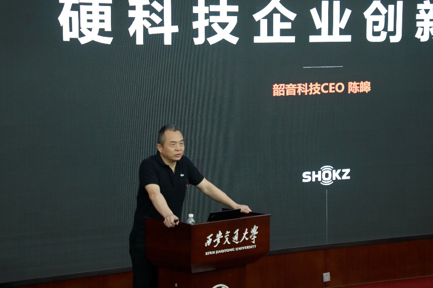 活动伊始,冯耕中院长进行了致辞。冯院长对陈皞先生的到来和分享表示欢迎和感谢,同时谈到“创业之路向来是不平坦的,有磨难才能有成功”,他对韶音科技的成就予以了高度评价,认为“韶音科技是创造奇迹的高科技企业”。