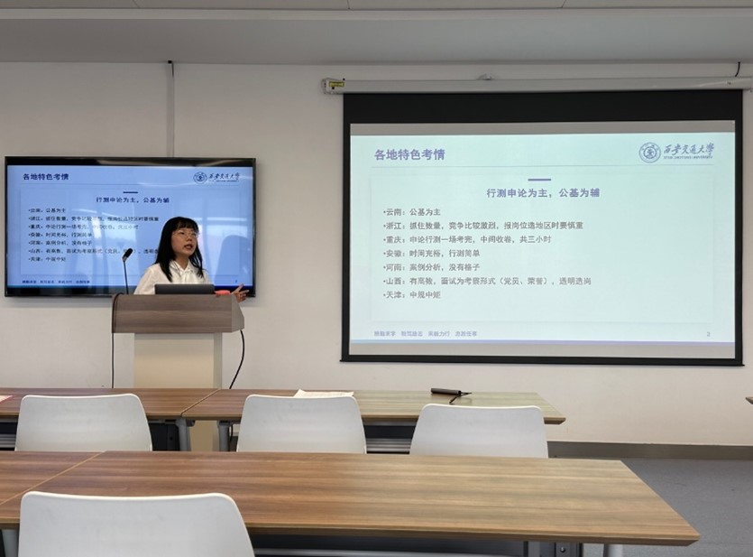 李经纬同学介绍了中央部委选调生的基本情况及相关要求,为同学们梳理了考试的全部阶段与环节,还提出了报考和准备笔试、面试、考察、体检的相关建议和注意事项。