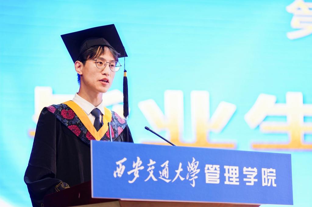 路虽远,行则将至;事虽难,做则必成。交大管院的学子有信心、也有能力,未来也定会在自己从事的领域做出一番大事业,成为整个社会的中流砥柱。但是希望大家在人生征途当中,不要忘记交大传授的“西迁精神”,“西迁精神”的底色是家国情怀,当大家成为领域专家、行业先锋之际,既能抬头望星空,又能俯首见苍生,看得见自己,也能看得见无穷的远方、无尽的人们,给这个社会带去生机、秩序,成为社会发展和民族复兴的坚实力量。