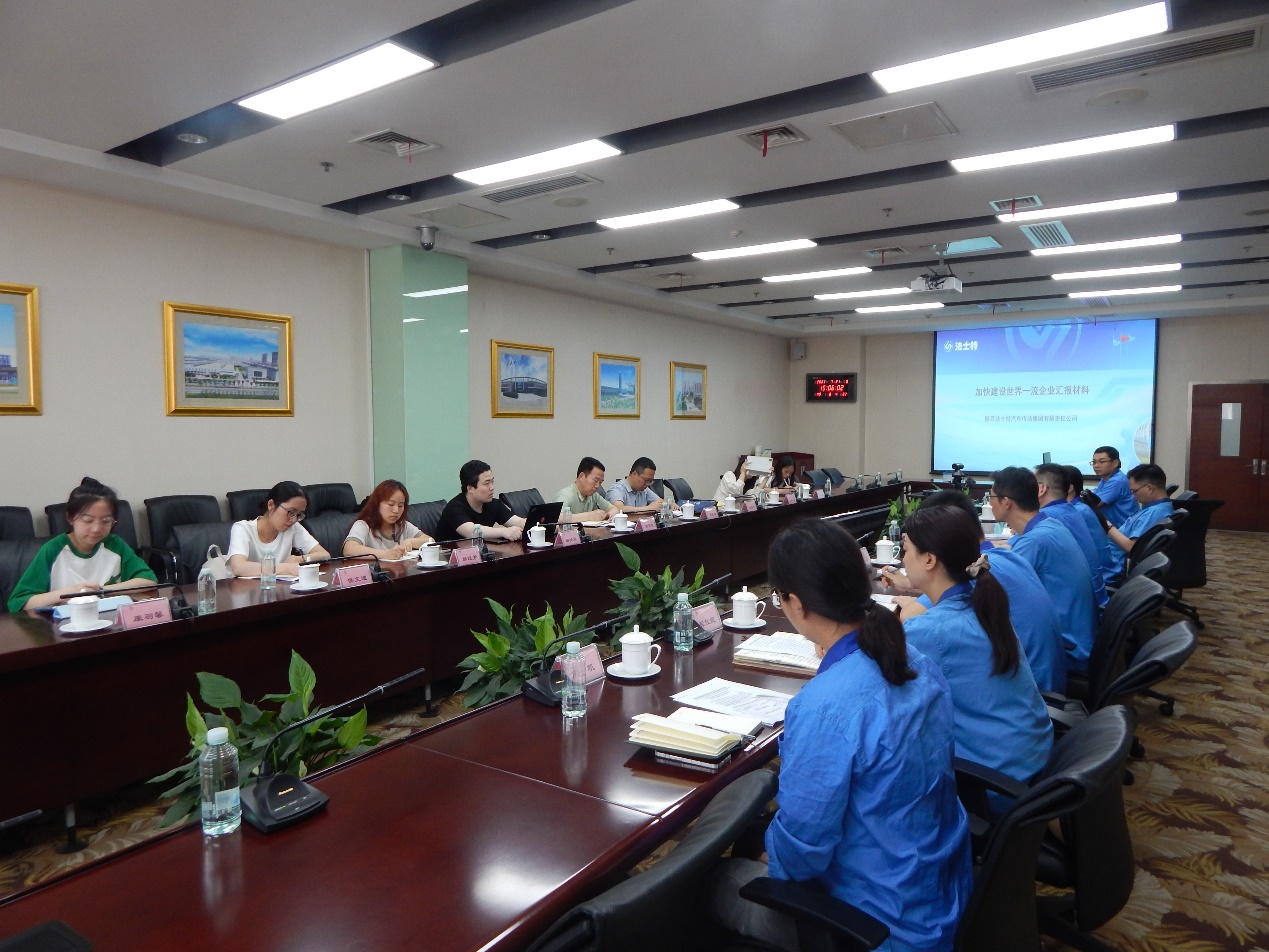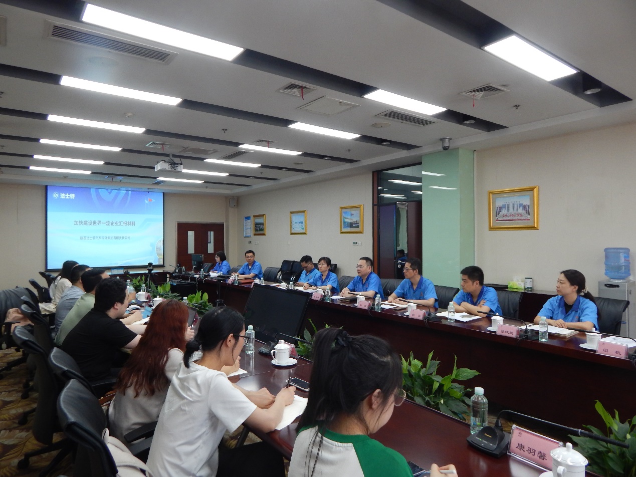 7月21日下午,课题组一行在法士特集团总经理助理赵志强的带领下参观展厅,聆听了关于集团历史、主要产品、所获荣誉及党建活动的介绍。接着,跟随工作人员参观“法士特三万三工厂”,车间井然有序,整洁高效,区域划分清晰,智能运输车穿梭其间,生产、试验工作有条不紊地进行着。参观结束后,双方进行座谈活动。