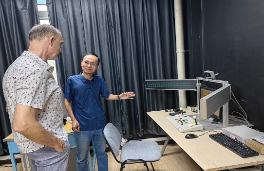 7月24日上午,Wedel教授和张洁教授等参观了学院的实验室,体验了a漫