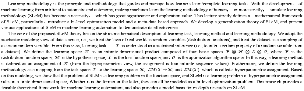 Zongben Xu is a professor in mathematics and computer science at Xi’an Jiaotong University. He received his Ph.D. degrees in mathematics from Xi’an Jiaotong University, China, in 1987. His current research interests include applied mathematics and mathematical methods of big data and artificial intelligence. He established the L(1/2) regularization theory for sparse information processing. He also found and verified Xu-Roach Theorem in machine learning, and established the visual cognition based data modelling principle, which have been widely applied in scientific and engineering fields. he initiated several mathematical theories, including the non-logarithmic transform based CT model, and ultrafast MRI imaging, which provide principles and technologies for the development of a new generation of intelligent medical imaging equipment. He is owner of the Hua Loo-keng Prize of Mathematics in 2022, Tan Kan Kee Science Award in Science Technology in 2018, the National Natural Science Award of China in 2007,and winner of CSIAM Su Buchin Applied Mathematics Prize in 2008. He delivered a 45-minute talk on the International Congress of Mathematicians 2010. He was elected as member of Chinese Academy of Science in 2011.