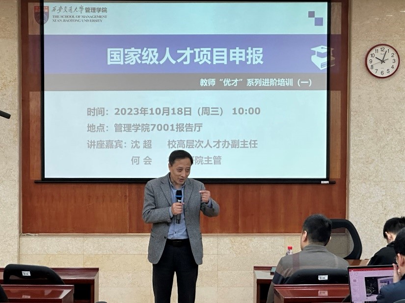 学校人力资源部高层次人才办副主任沈超教授做“人才计划申报浅谈”讲座。沈教授从人才计划汇总、人才成长路线、申报书撰写等几个方面展开,结合学校近几年高层次人才推荐工作情况、管理学科的特色及其本人申请获评人才项目的经验,介绍了不同项目的特点、申报材料准备的要点、同行评估的方式等内容。沈教授特别讲到打铁还需自身硬,被专家认可的创新点是核心竞争力,申报书的撰写是重中之重,建议申报人瞄准目标,定制长远的规划,积极参与领域内有影响的活动,与同行建立良好的交流。