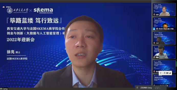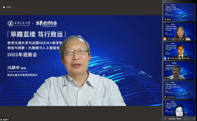 122日,a漫 和SKEMA商学院合作举办的创业与创新(大数据与人工智能管理)硕士学位教育项目2022年迎新会成功举行。西安交大a漫 院长冯耕中、副院长田高良、院长助理魏泽龙、SKEMA商学院创业与创新硕士项目主任Nicolas ServelSKEMA商学院中国校区学术校长窦文宇、SKEMA商学院助理教授徐亮、SKEMA招生与项目经理杨娟、a漫 国际项目中心全体工作人员以及该项目在读的120名学生齐聚云端,共迎新春,同谋发展。会议由西安交大a漫 院长助理、市场营销系主任、国际项目中心主任舒成利主持。