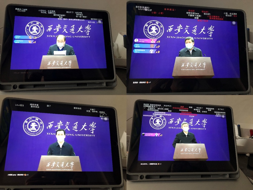 围绕学校疫情防控工作的情况,校党委书记张迈曾、校长王树国、党委副书记宫辉、副校长郑庆华对疫情期间及新学期阶段的总体工作、教学、科研、管理、服务等项工作进行了安排与部署。通过线上直播课,提醒广大师生做好防疫、努力工作、提效保质,鼓励大家不负韶华、坚定信心、牢记西迁精神,为抗击疫情做出交大人应有的奉献。