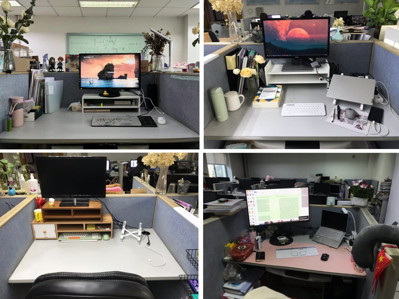 经检查发现,大部分教研室的整体卫生情况良好,工位桌面整洁,部分同学还通过摆放卡通玩偶和新鲜绿植来主动美化工位环境。但个别教研室对于环境卫生缺乏重视,个人物品被随意堆放,垃圾没有得到及时清理,个别学生工位存在物品排放不整齐,桌面不整洁等情况。工位是研究生科研学习的重要场所,研究生一天中的大部分时间都在工位上度过。一个好的科研环境不仅关乎同学们的心情和舒适度感知,也会影响科研的成果和质量。为提高学生的安全卫生意识,爱卫检查组成员在需要注意卫生问题的工位上放置了《工位安全卫生温馨提示单》,温馨提醒同学们增强个人卫生意识,同时在疫情期间积极做好个人防护工作。