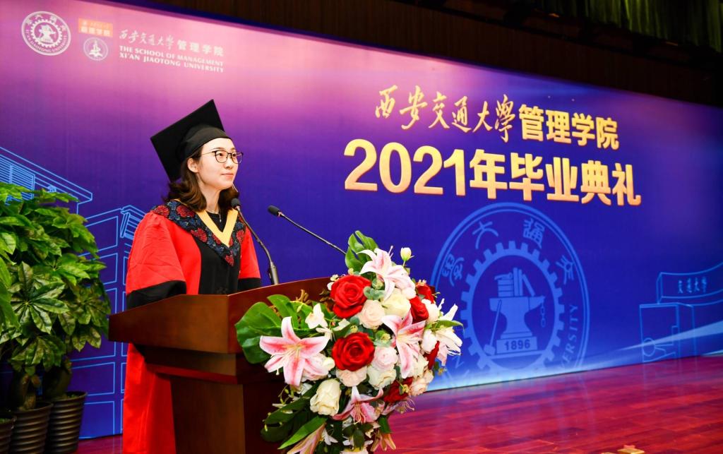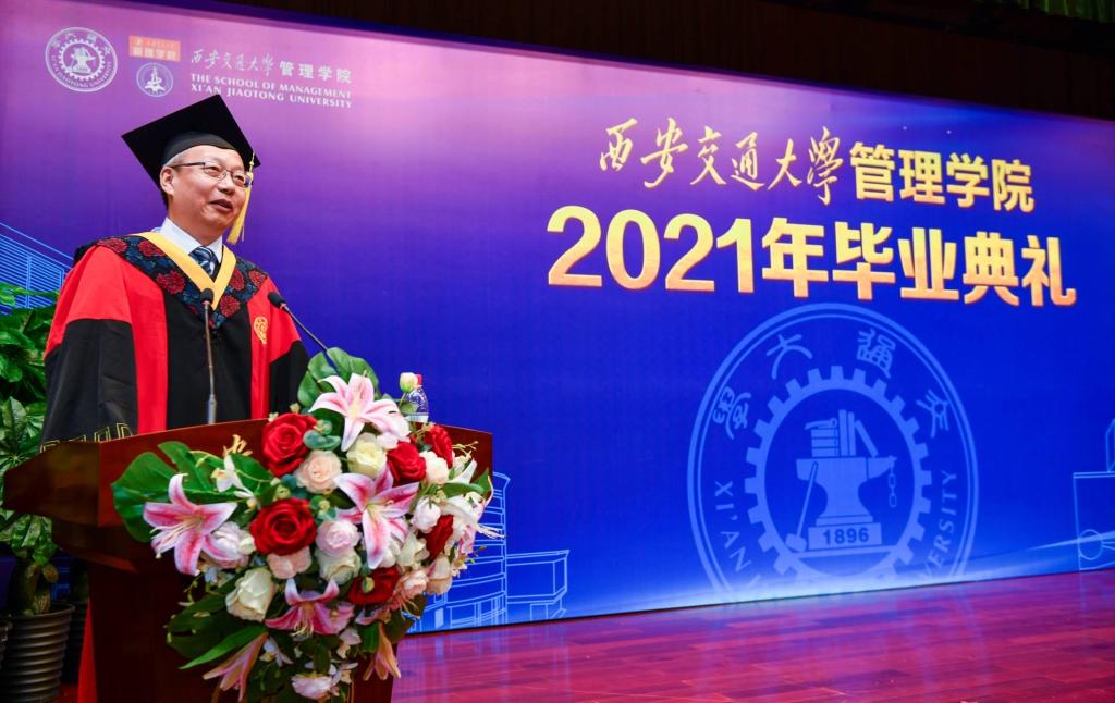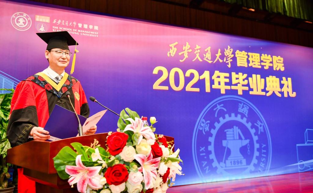 冯耕中院长在讲话中对全体毕业生寄予三点希望:一是要保持良好的终生学习的态度,我们身处在百年未有之大变局,要想适应这种局势就需要持续不断的学习,学习知识,理解社会,创造知识;二是要在社会实践中持续升华工作能力,学业的完成与社会现实需求还是有差距的,同学们要不断地沉淀累积努力成长,将学校学习的理论技术方法与社会实践相结合,灵活运用到实际工作当中,不断提升自身的素养能力;三是要不畏艰难和挫折,具有坚强的意志力,失败是成功之母,经受挫折的过程,实际上是蓄积力量的过程,在未来面对挫折时,能够将委屈和苦闷转化为前进的动力,把“奋斗”融入自身的成长进步和推进经济社会的发展中。冯院长祝愿全体毕业生能够在各自的学习工作岗位上做出新的成绩和贡献,创造新辉煌!希望广大毕业生不管身在何方,有时间就常回“家”看看,a漫