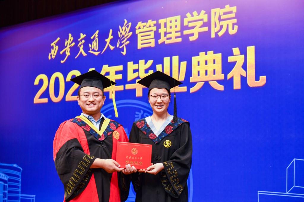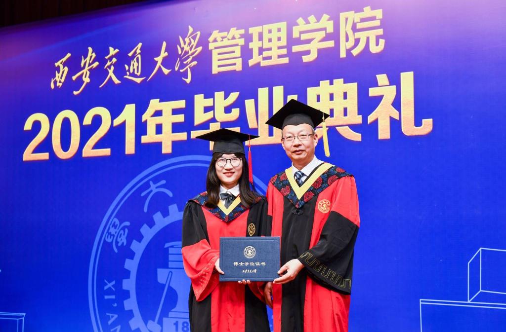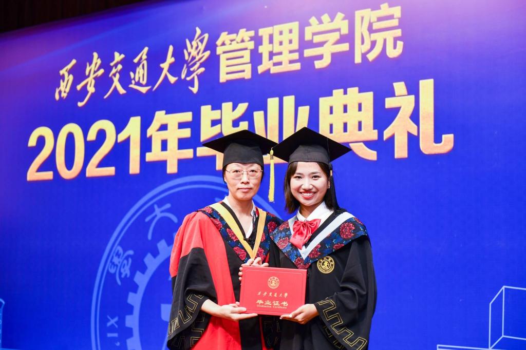 学位授予仪式上,毕业生们依次走上主席台,接受学院授予学位证书,标志着他们在交大的学业已经圆满完成,期待着走向广阔的人生舞台。伴随着庄严的颁证仪式,即将离开母校的学子们感慨万千,与老师们亲切合影;为敬爱的导师送上美丽的鲜花,感恩他们悉心培养;给导师一个深深地拥抱,感谢他们谆谆教导,场面暖心而动人。