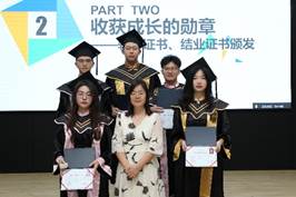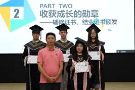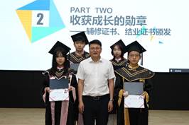 舒成利副院长及教师代表们为21级毕业生颁发辅修证书、结业证书和校友徽章,并对2021级优秀学员进行表彰并颁发奖品。