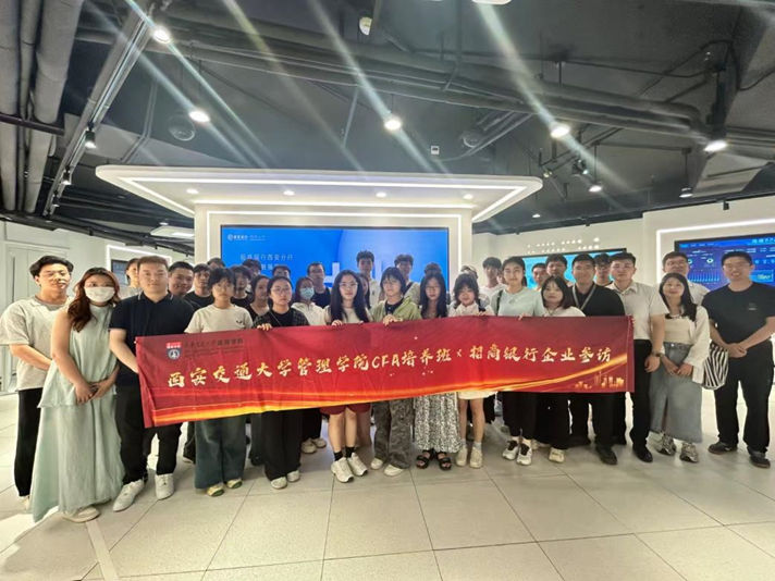 CFA(特许金融分析师)培养班师生代表30余人赴招商银行西安分行开展实践参访活动。本次活动以“探索金融前沿实践,厚植金融报国情怀”为主题,通过实地参访、行业讲座与座谈交流,深化学生对金融行业发展趋势的认知,助力学生将理论知识与实践应用相结合,为服务国家金融战略需求夯实基础。